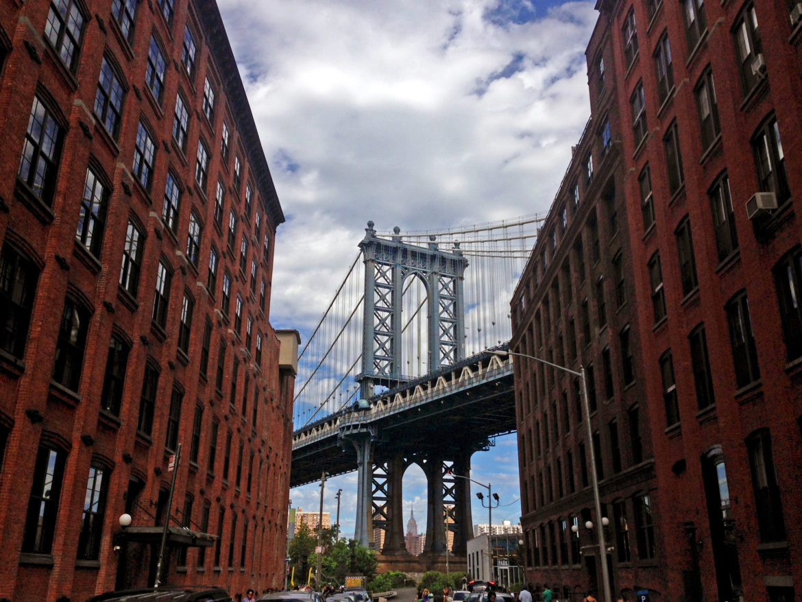 A porta de entrada do bairro é a famosa (e linda!) Brooklyn Bridge. Atravessar a ponte é um dos passeios imperdíveis de Nova York. O DUMBO é descolado e cheio de design, mas é bem pequeno, dá pra percorrer ele todo a pé.
